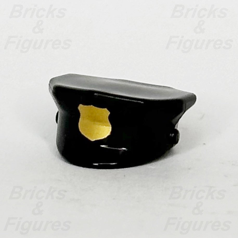 LEGO® Black Police Officer Hat Minifigure Part Accessory Gold Badge 15530pb01